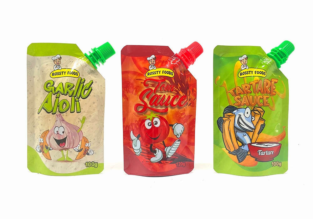 The sauce spout pouch offers easy pouring and mess-free dispensing of sauces. Its resealable feature maintains freshness and prevents spills. The pouch’s lightweight, space-efficient design reduces waste and enhances branding, making it a convenient and attractive packaging choice for sauce products.